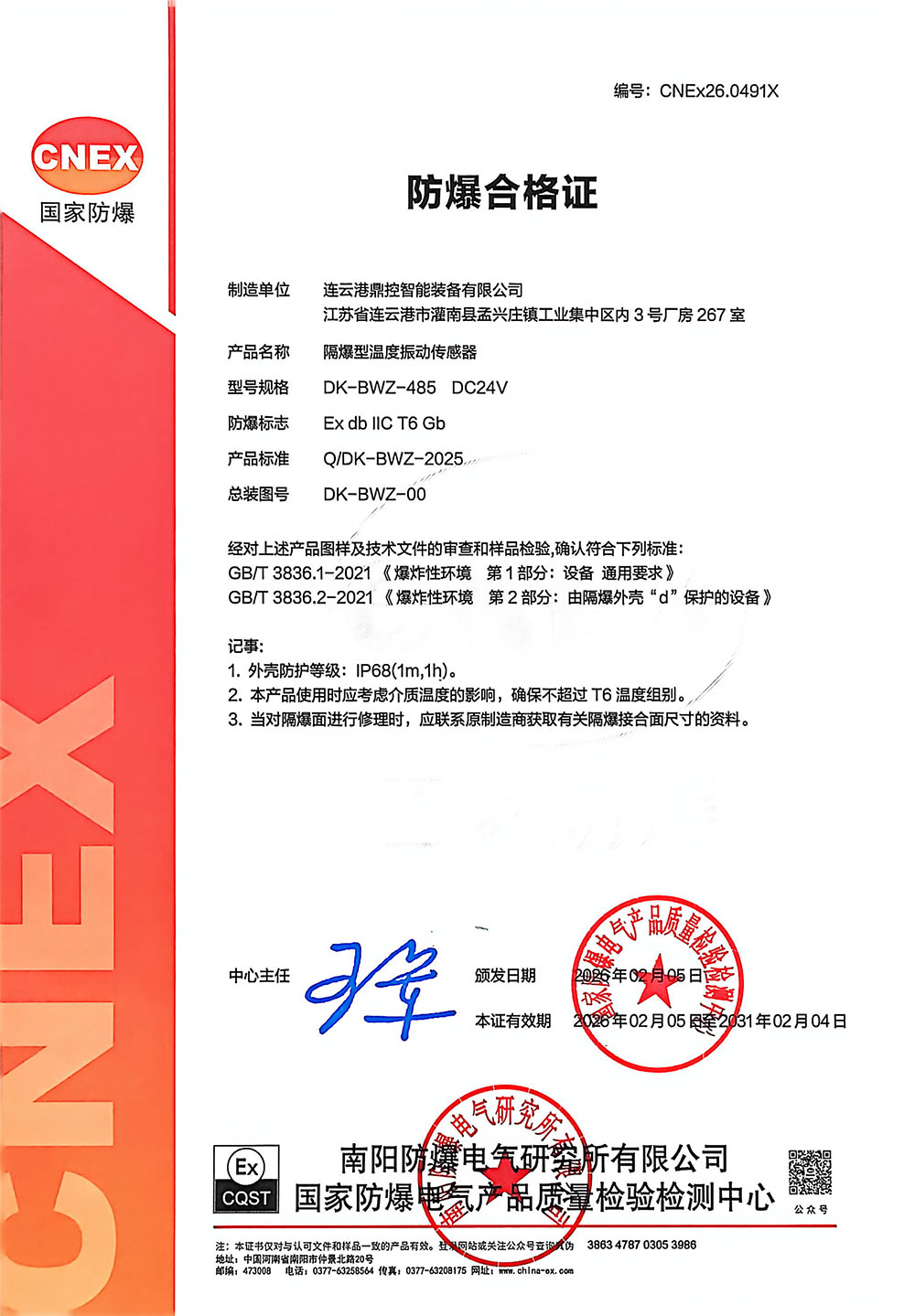 DK-BWZ-485 隔爆型温度振动传感器